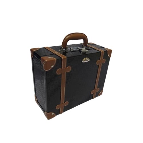 Warna dasar hitam dengan list coklat membuat make-up case ini terkesan vintage,terdapat 1 level dengan sekat-sekat sehingga make-up tools Anda dapat disimpan dengan lebih rapi, menggunakan sistem kunci untuk keamanan barang bawaan., mudah untuk di bawa travelling karena tidak terlalu berat dan ukuran yang dapat dimasukan cabin.