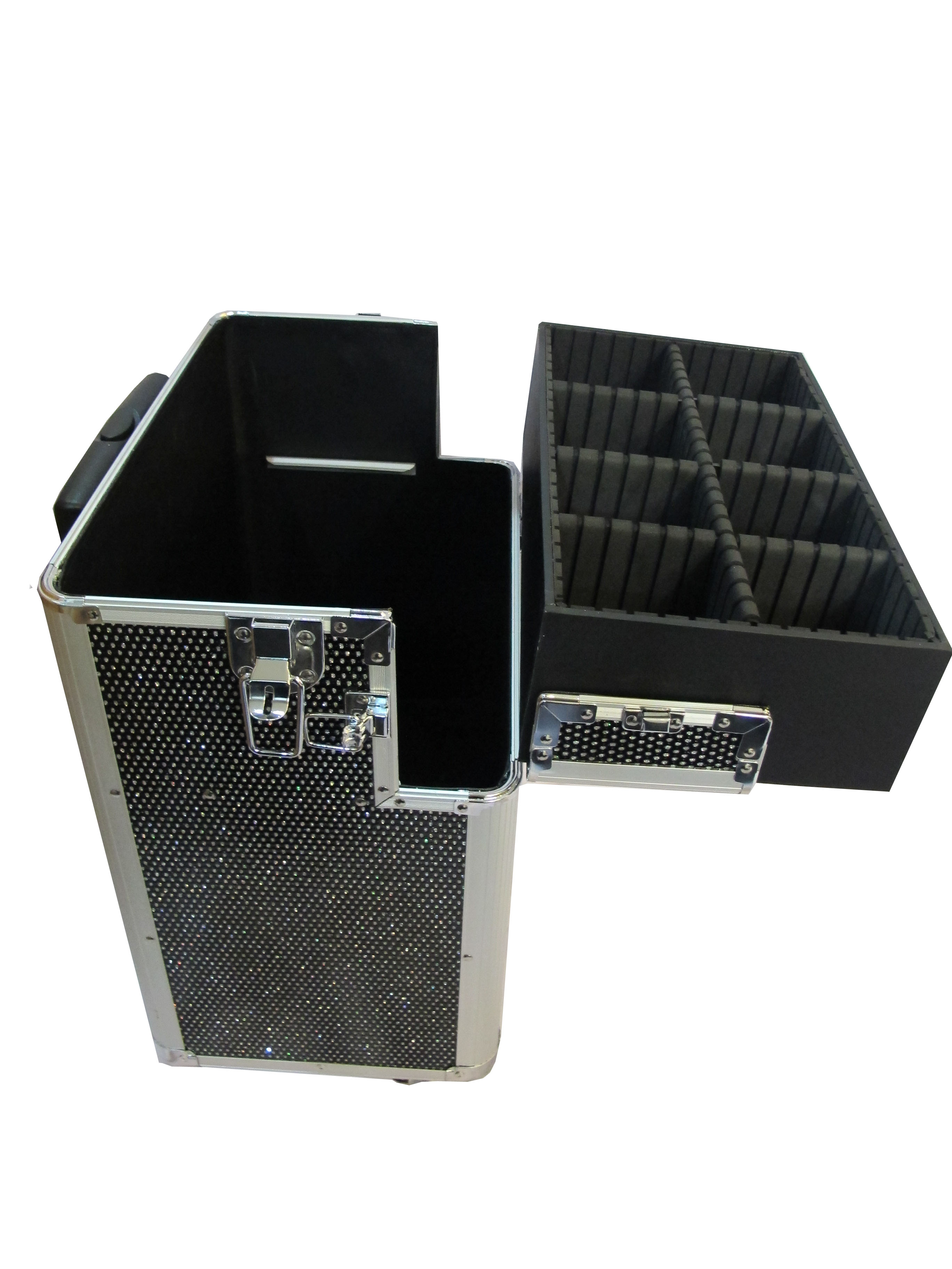 Beauty case dengan tempat yang lebih besar memberi ruang lebih untuk menyimpan barang. Menggunakan sistem kunci dua sisi untuk keamanan barang bawaan. Mudah untuk di bawa travelling karena bentuknya seperti tas koper beroda yang dapat di dorong.