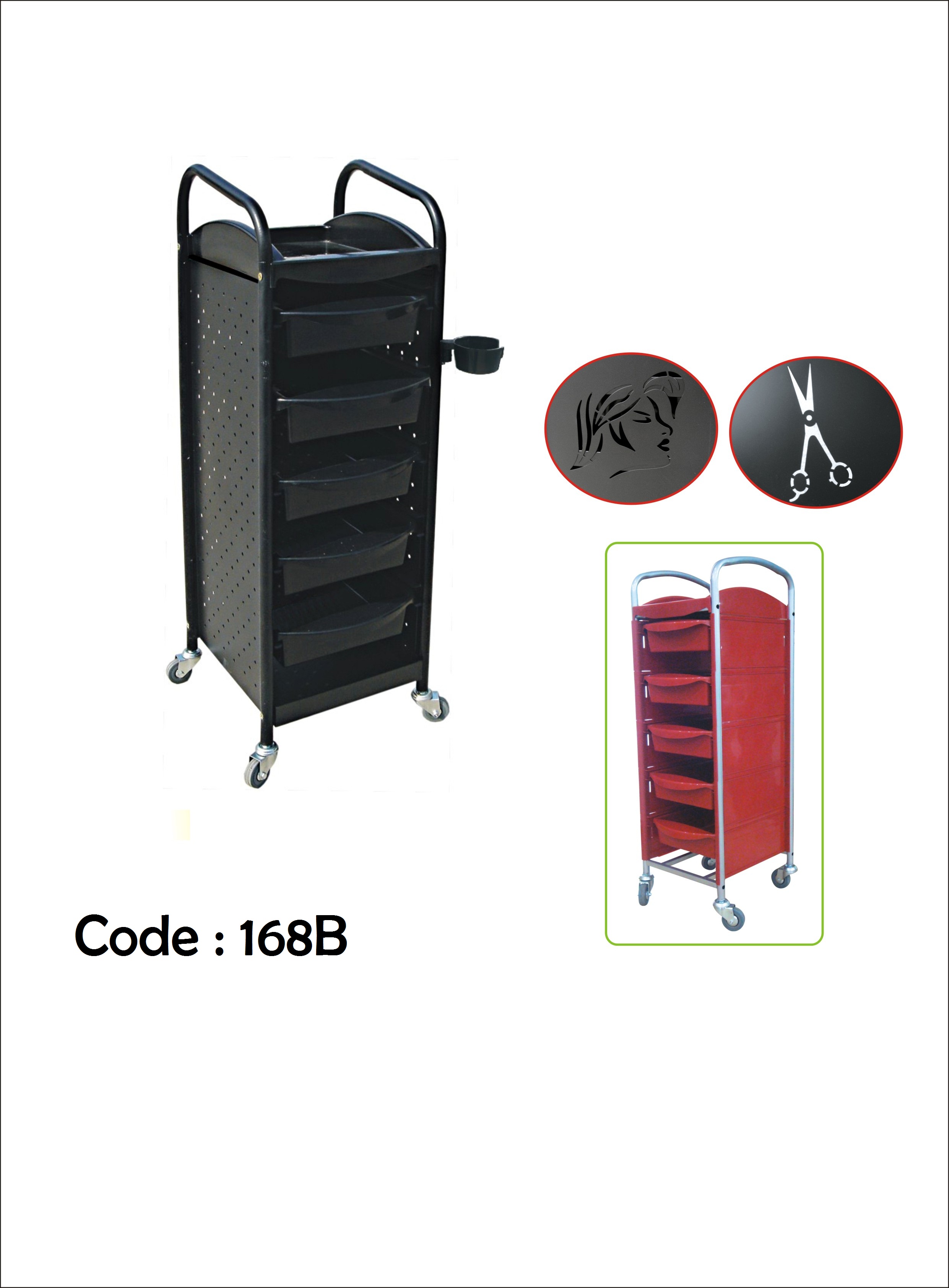 Trolley ini untuk meletakkan perlengkapan salon Anda dengan lebih rapi dan tertata, dengan 5 tingkat yang mampun menampung lebih banyak serta pegangan dan roda yang memudahkan Anda saat ingin memindahkan trolley ini.