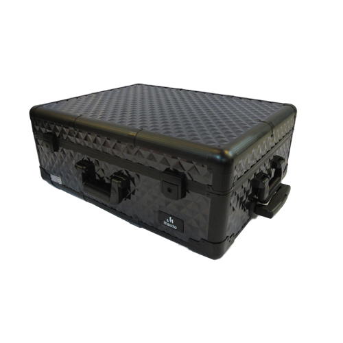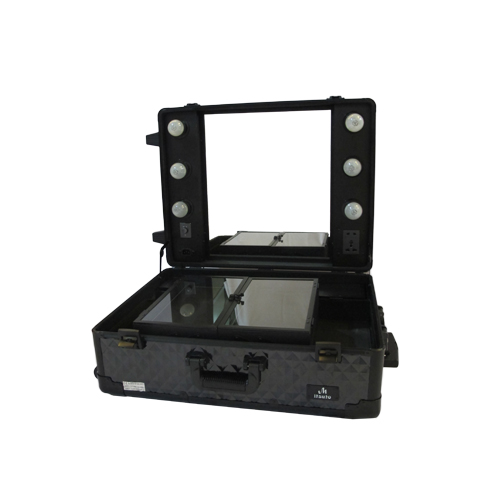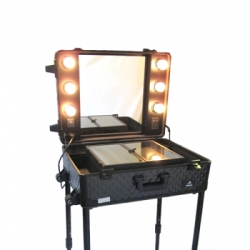 Beauty case yang mempunyai kaki penyangga sehingga beauty case dapat digunakan dimana saja. Kaki penyangga dapat di sesuaikan tingginya (hingga 1 m). Dengan kaca , 6 lampu dan level cahaya yang dapat di atur , colokan listrik yang dapat di gunakan untuk alat styling (seperti hairdryer, flat iron, dan curling tongs). Bentuk seperti tas koper yang dapat di dorong sehingga mudah untuk travelling dan menggunakan sistem kunci pada dua sisi sehingga aman dan leevel 2 untuk ruang lebih Anda.