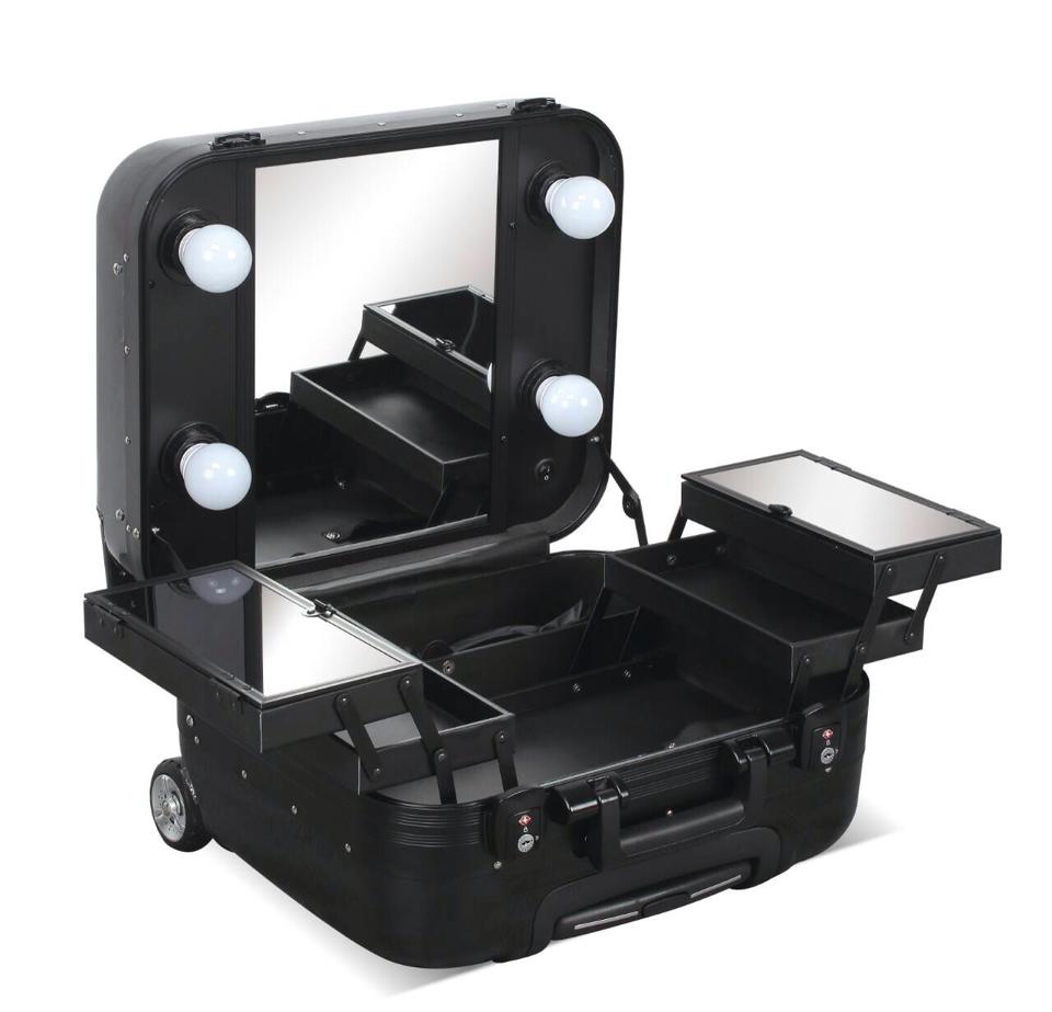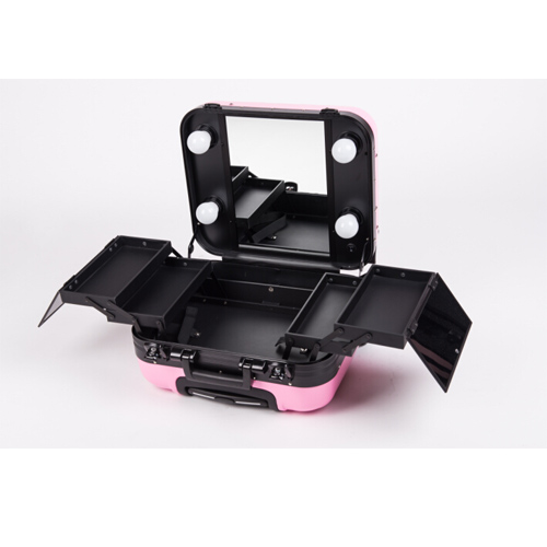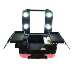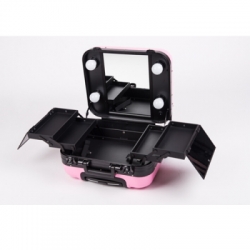 Beauty case lampu berwarna pink yang terbuat dari kualitas terbaik (terbuat dari bahan yang tahan banting) dan design yang menarik. Terdapat kaca, 4 lampu bolam LED (terang, tahan lama, tidak panas, aman untuk di pegang), berukuran cabin size dengan 2 trays dapat menampung makeup tools Anda, menggunakan sistem kunci pada dua sisi sehingga yang aman untuk barang bawaan.